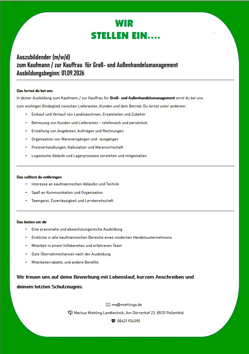 Herzlich Willkommen bei Miehling Landtechnik in Preith bei Eichstätt !